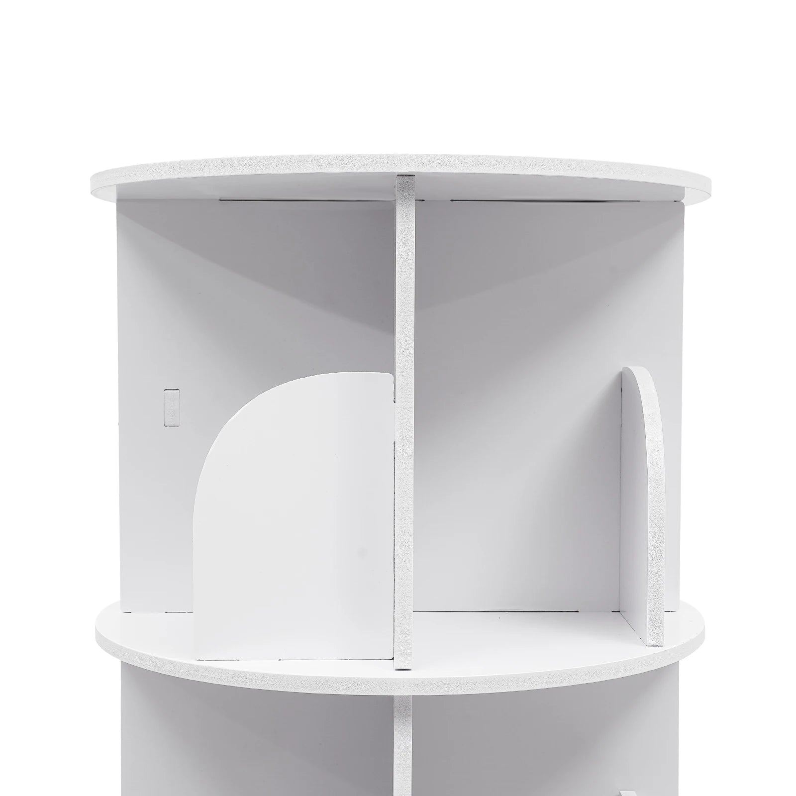 2/4-Tier Wooden Rotatable Bookshelf - 360°Display Floor Standing Storage Rack, White Multifunctional Bookshelf Organizer