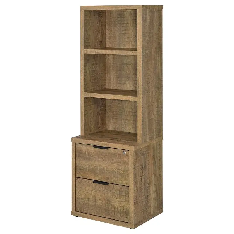 Bookcase features a mango-inspired wood grain finish that adds a natural and elegant touch to any space
