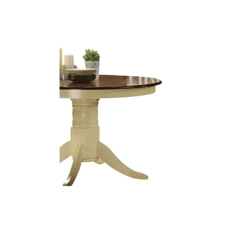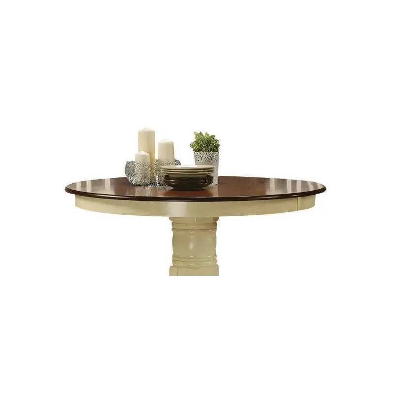 Round Dining Table Dimension: 45" Dia x 30"H, Buttermilk Finish•Wood Turned