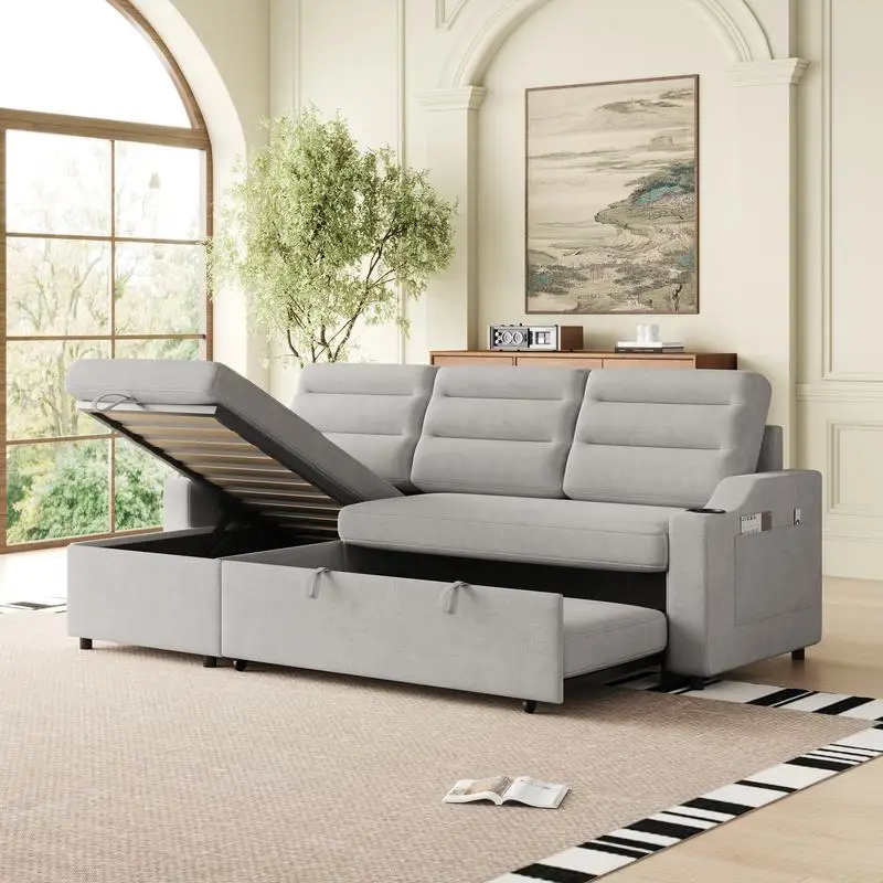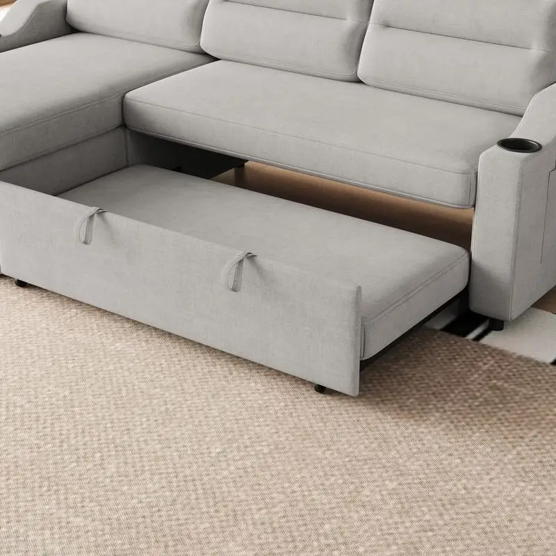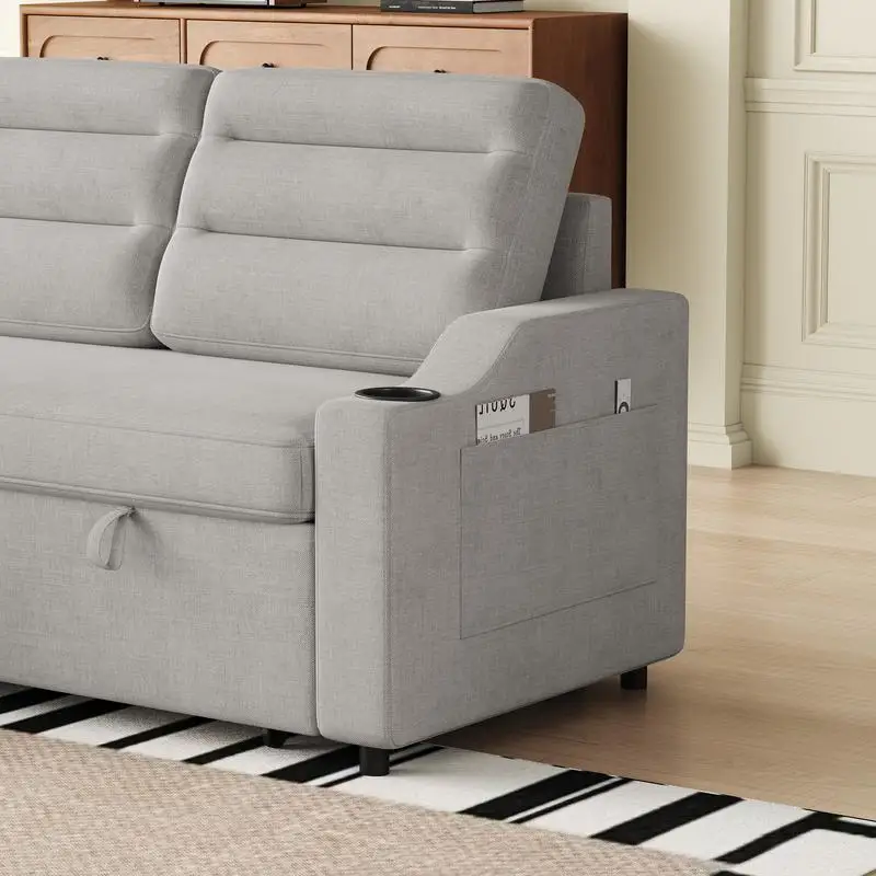✔Quick conversion into a sleeping bed: The sofa bed pulls out a drawer type at the end, equipped with a portable handle with the assistance of the bottom pulley device to quickly complete the bed transformation. It can meet your various needs and no longer worry about unexpected guests.