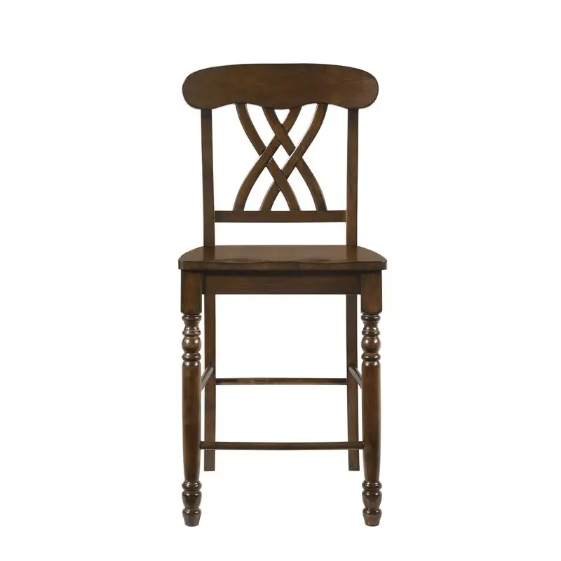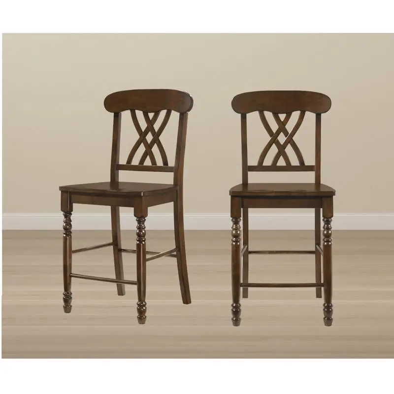 Product Name: Country Farmhouse Style Walnut Finish Counter Height Chairs 2pc Set Wooden Dining Room Furniture, Double X-Back Design