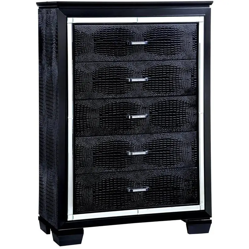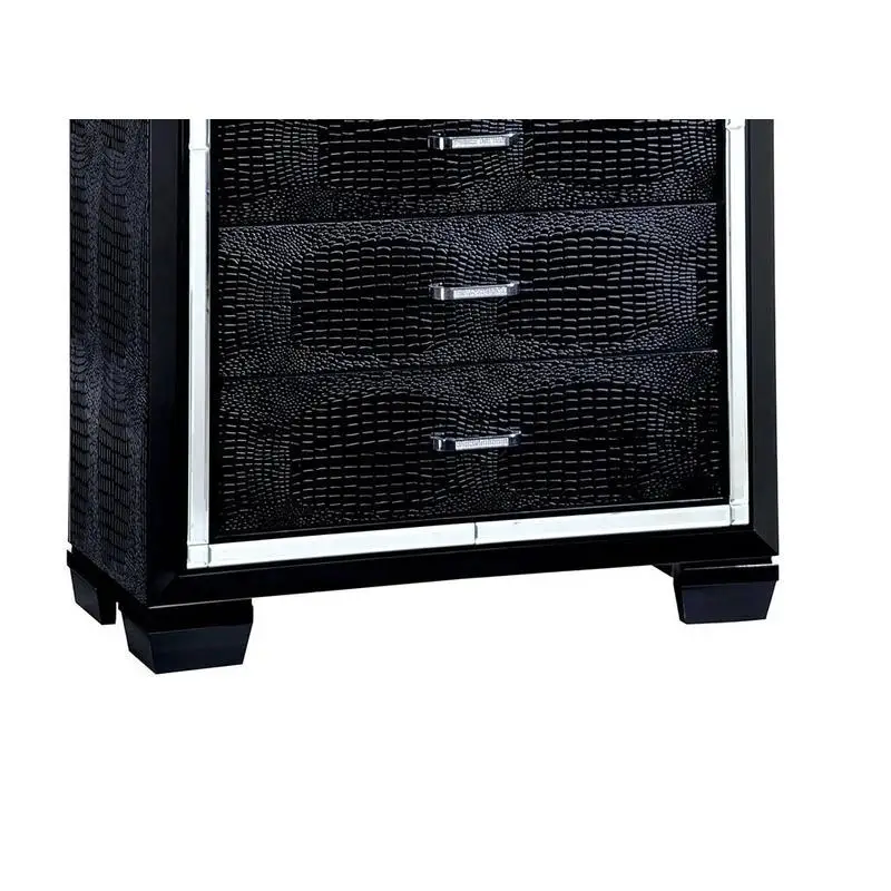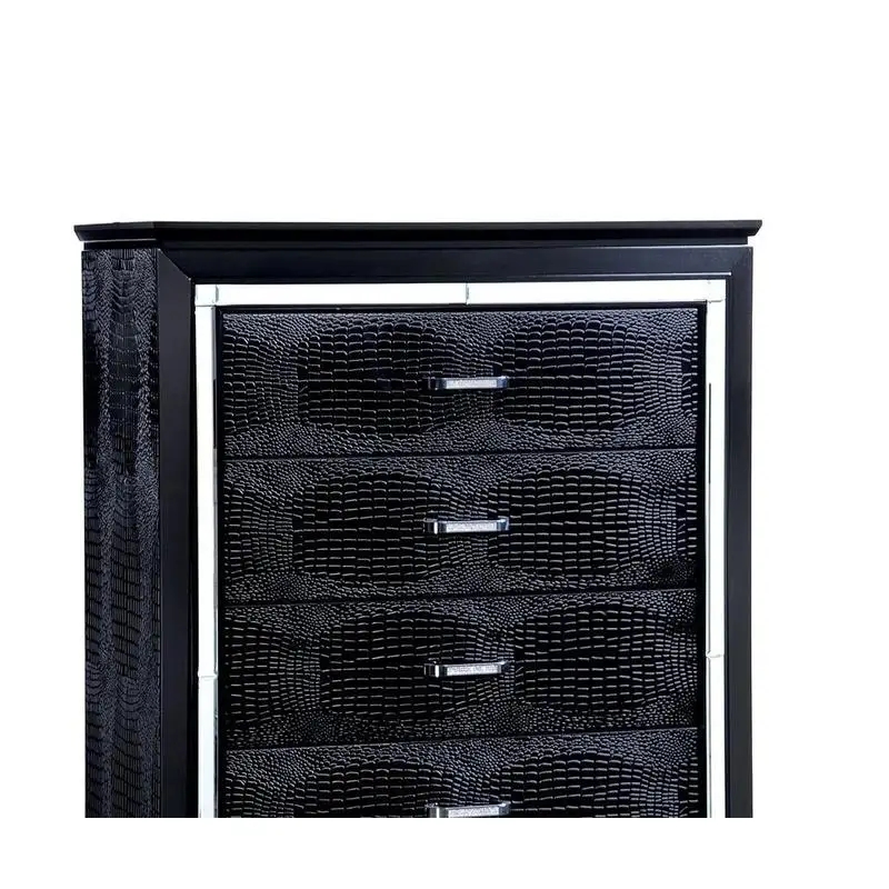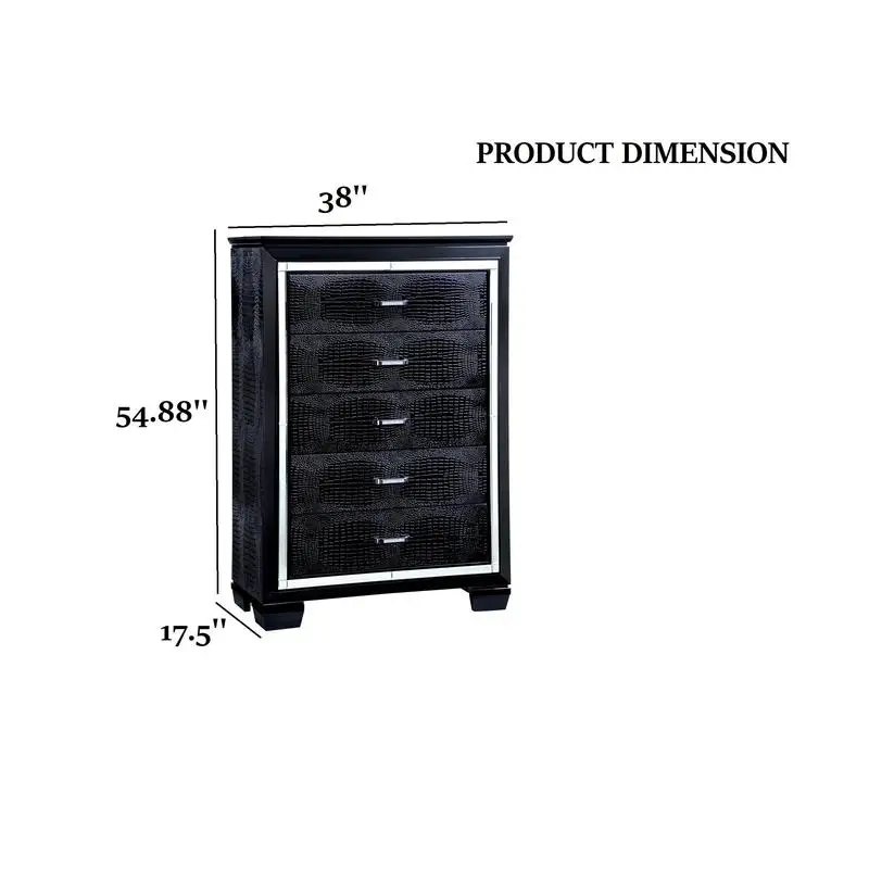 Product Name: 1pc Chest Crocodile Texture Contemporary Style Diamond Crusted Handle English Dovetail Five Drawers 3mm Mirror Black Finish