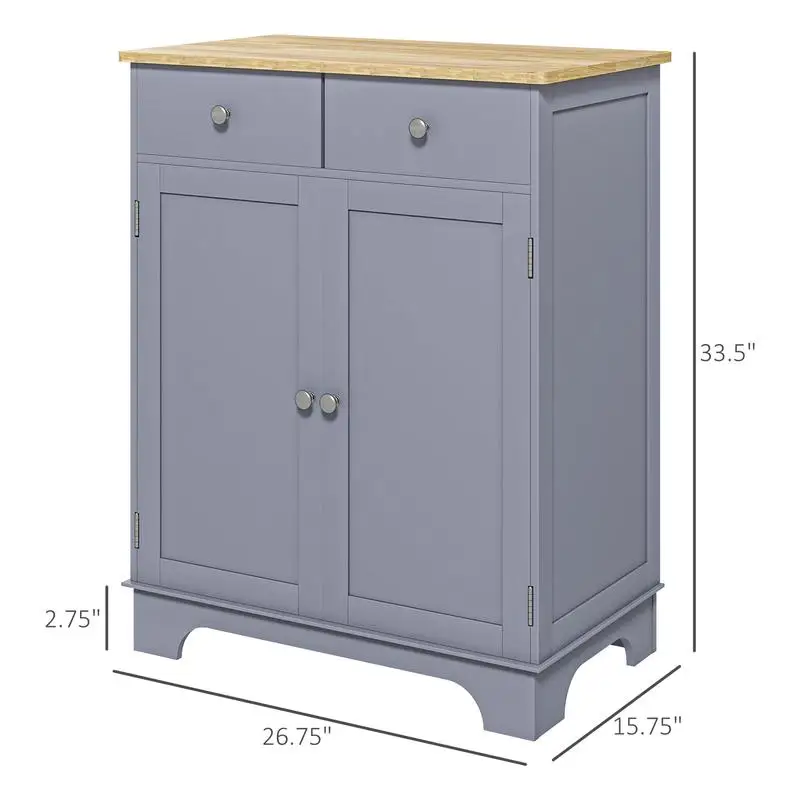 Roomy Storage: This storage cabinet utilizes two large drawers for utensils or napkins and a two-doored shelf offering storage space for plates, plastic containers, pots, or pans.