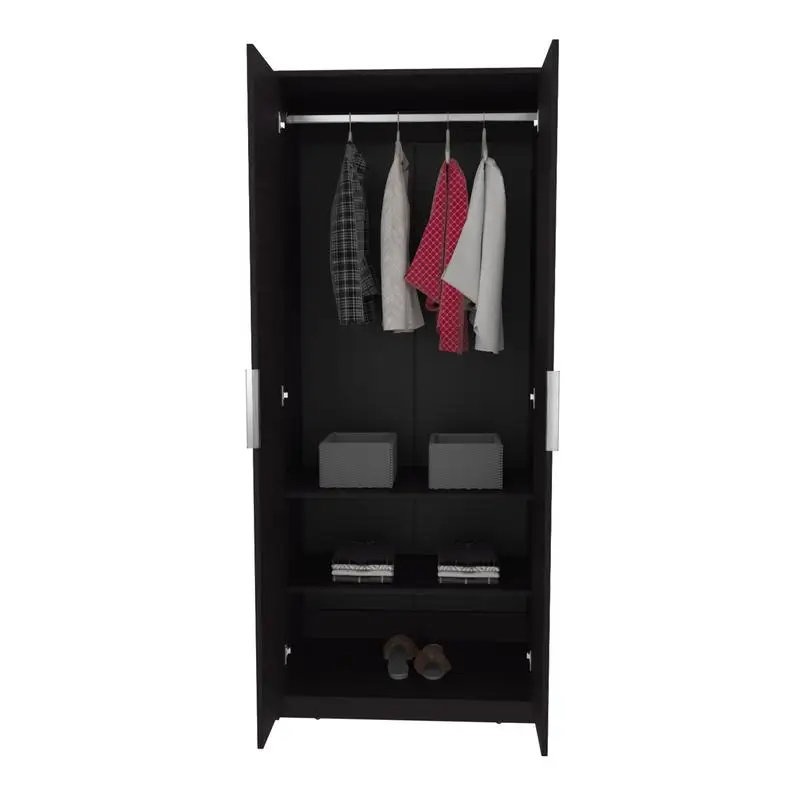 Product Name: Wenden Armoire Double Doors, Hanging Rod And Interior Shelves, Freestanding Modern Wardrobe, Black