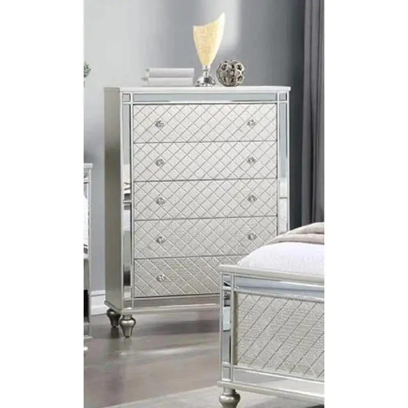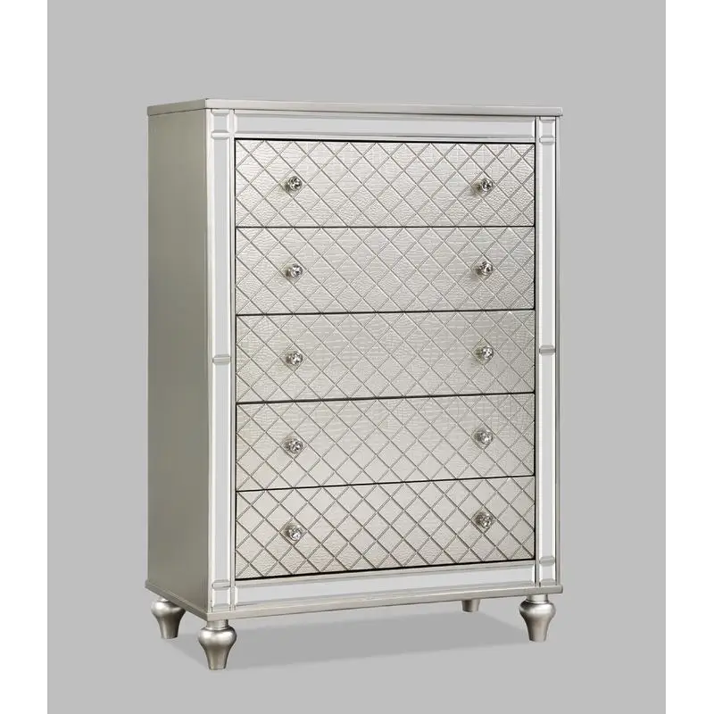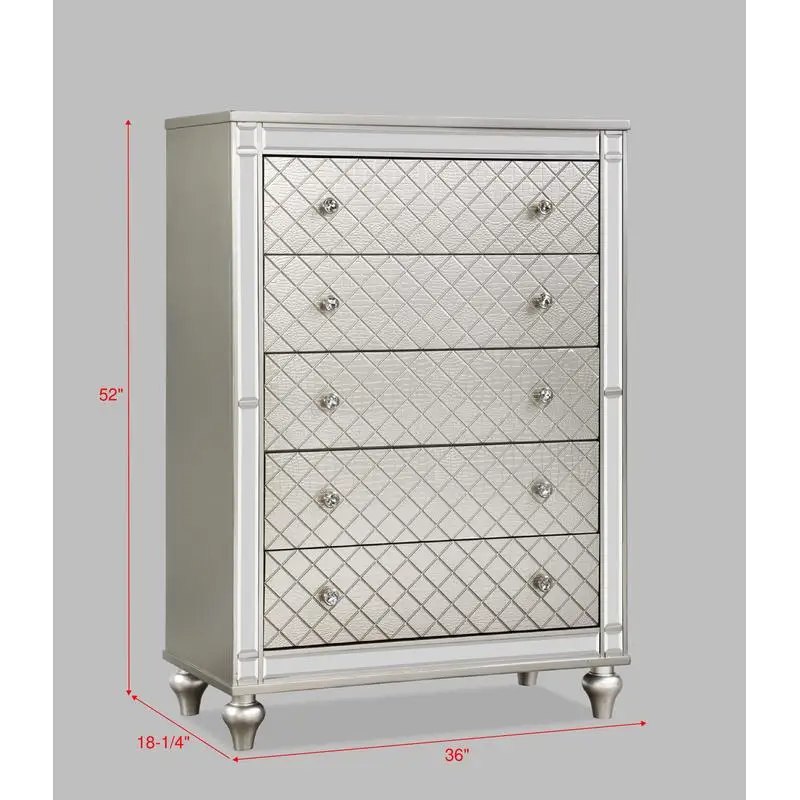 Product Name: 1pc Glam 5-Drawer Bedroom Chest Diamond Patterned Drawer Fronts Silver Finish