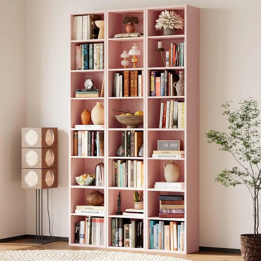 IRONCK Tall Narrow Bookshelf 8 Tiers, Compact Corner Bookcase, Easy to Match for Living Room, Office, Study, Bedroom, Pink