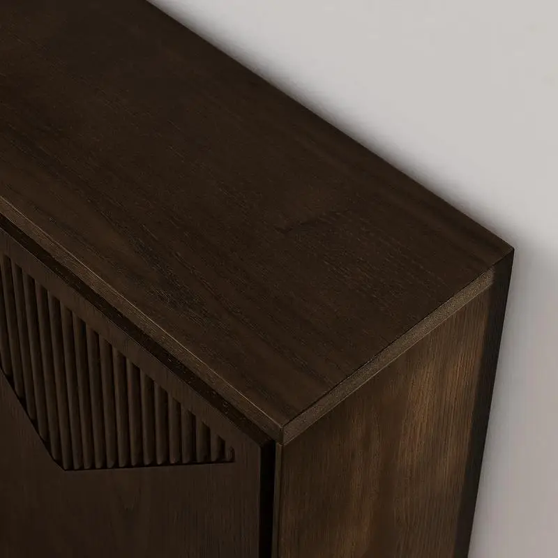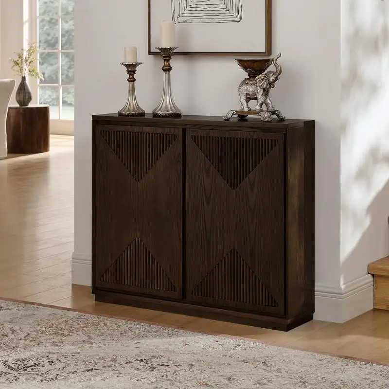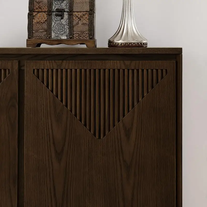 [ Elegant V-shape Fluted Design ] - This sideboard features V-shaped grooves on its door panels, with vertical grooves crafted from solid wood strips to create a refined textured effect. Its warm wood-tone finish effortlessly complements any decor style—from traditional farmhouse to contemporary furnishings—making it a versatile choice for your home.