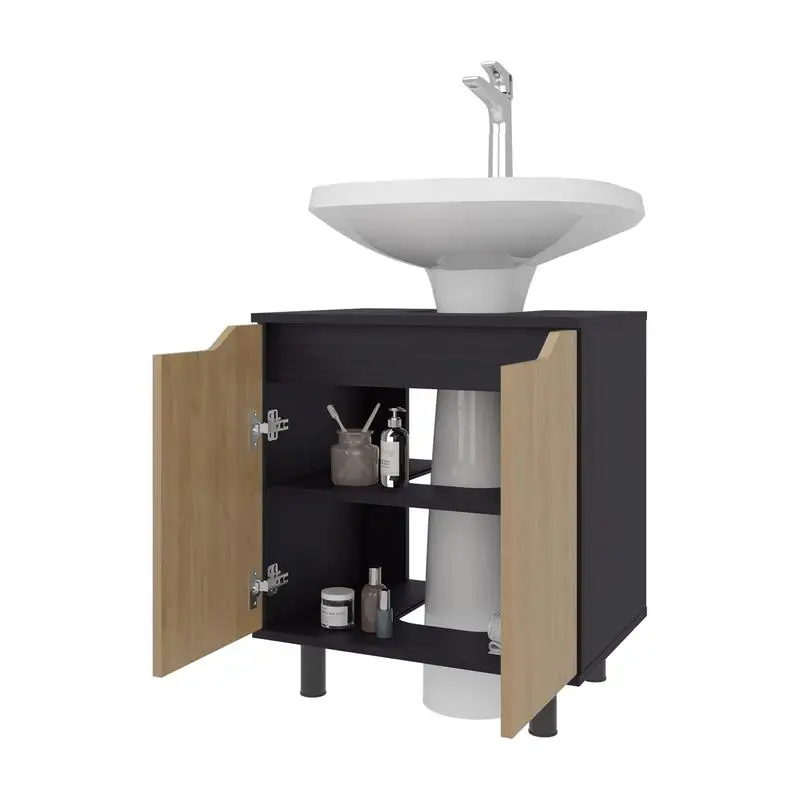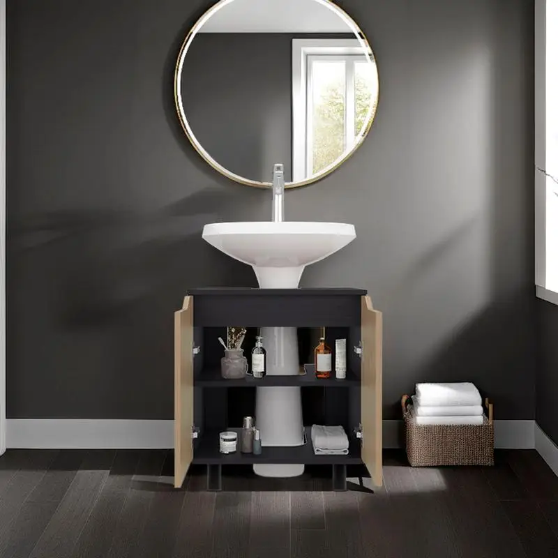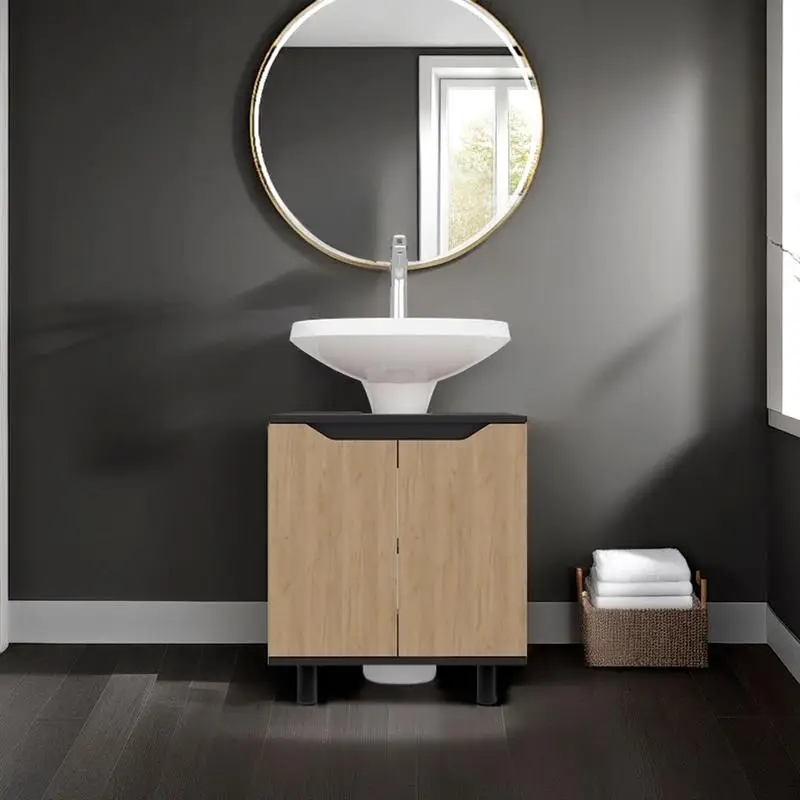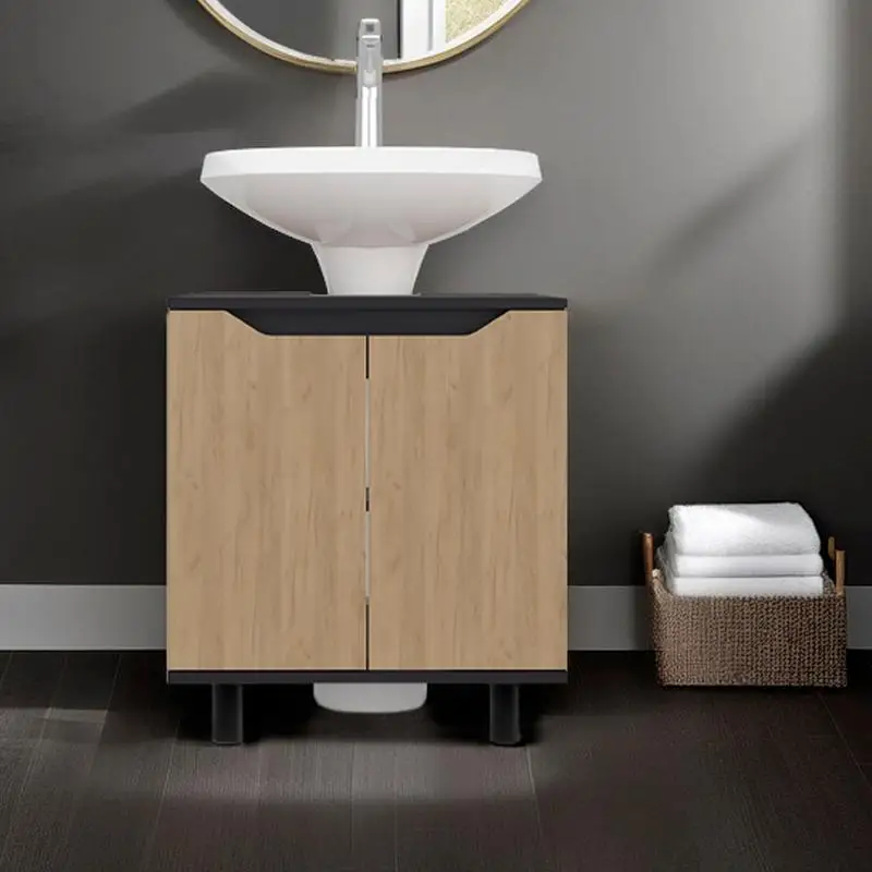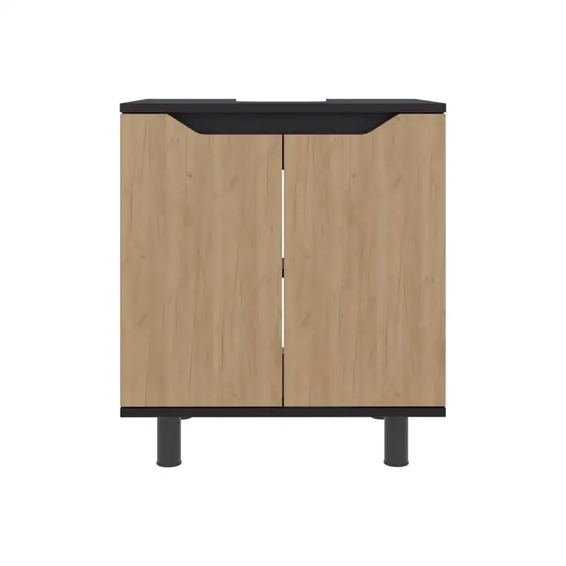 Product Name: Natural Oak and Black Under Sink Storage Cabinet with Double Doors