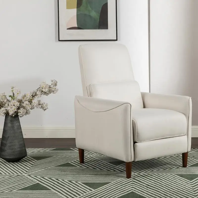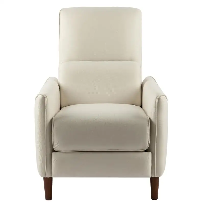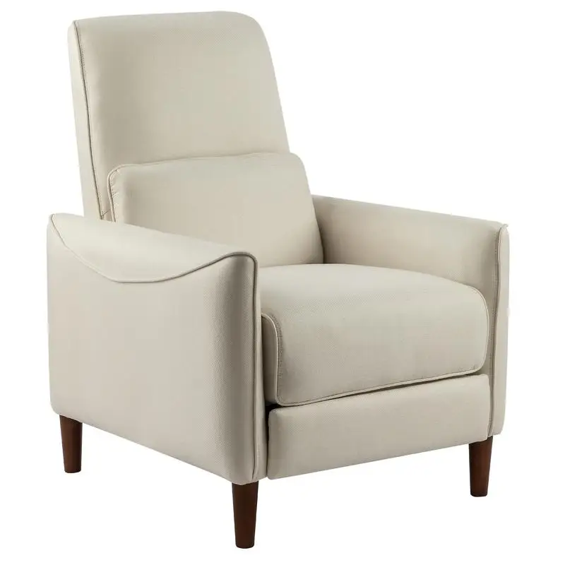 Adjustment Small Recliner Chair:This is a small but facile reclining chair for living room and bedroom, perfect for limited space. Push the arm of the recliner to extend the footrest from the front for legs stretch and lie down