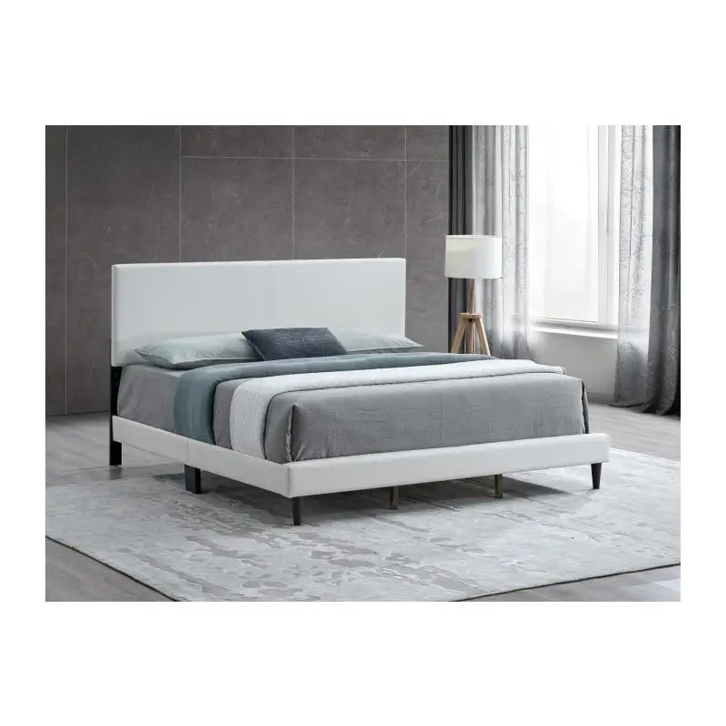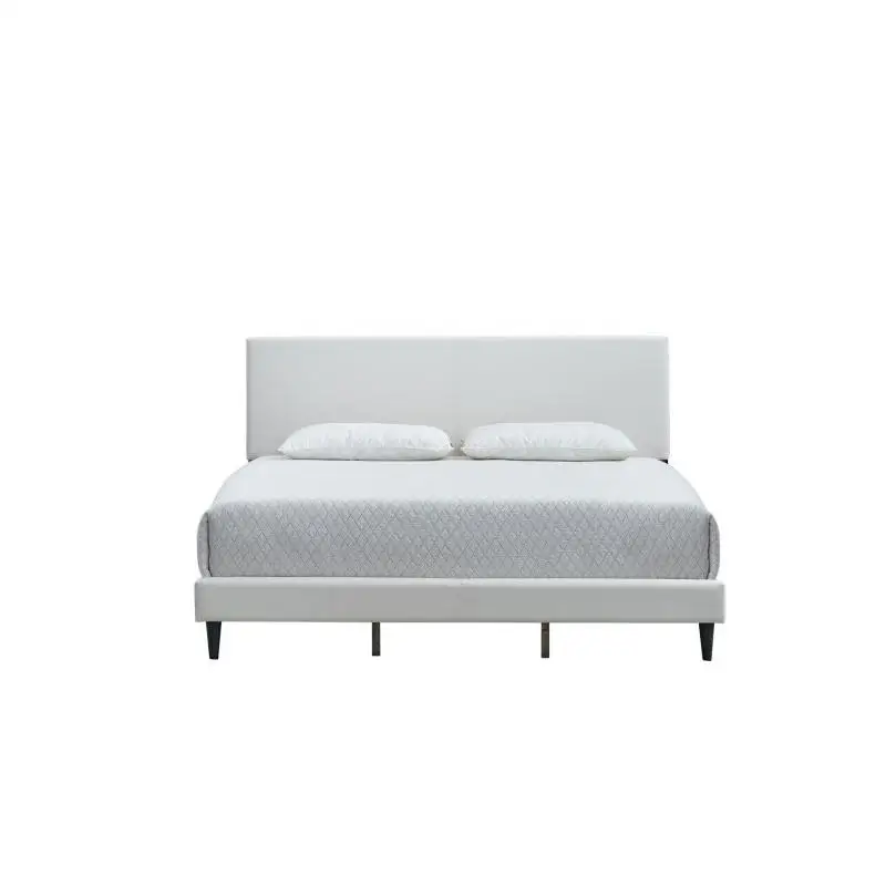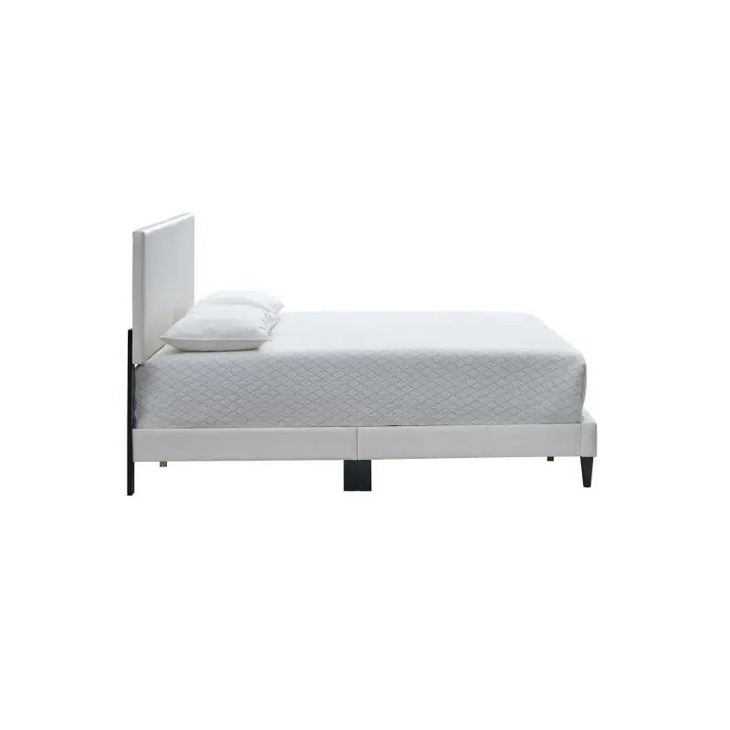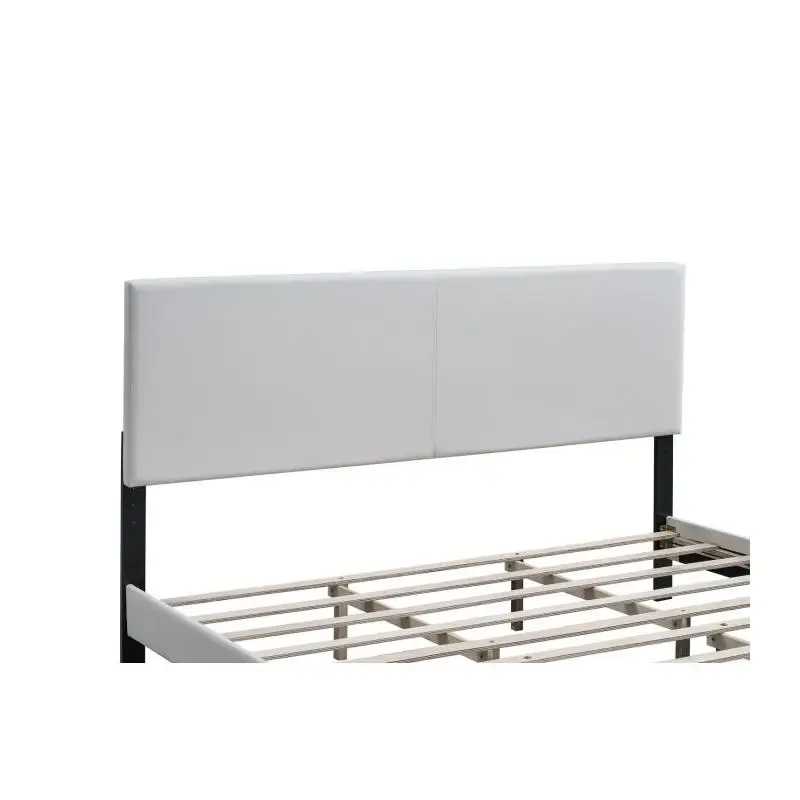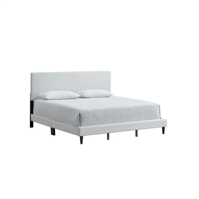 Striking White faux leather upholstery delivers a modern look and a soft, comfortable surface.