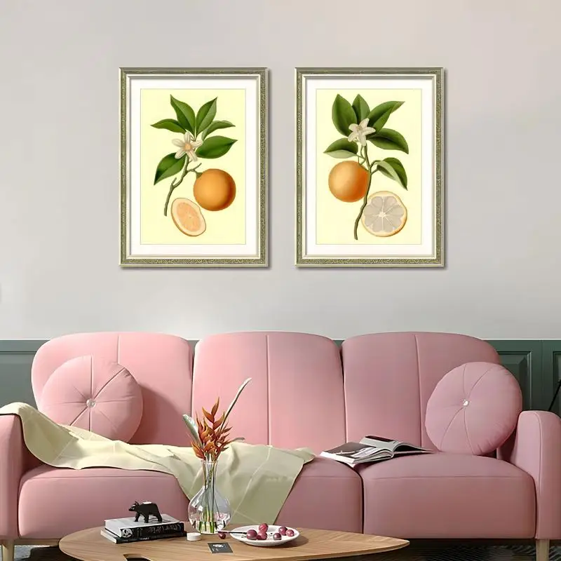 Product Name: Set of 2 Orange Fruit Botanical Framed Wall Art – Replaceable Canvas Prints with Solid Wood Picture Frames, Fresh Kitchen and Dining Room Wall Decor 18x24 inches