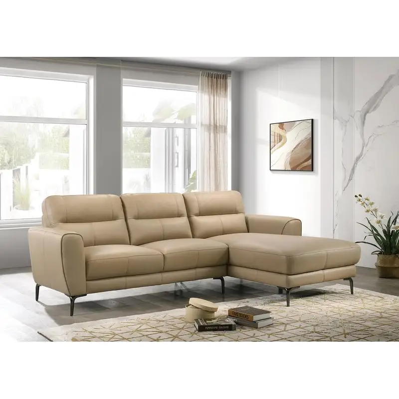 Product Name: Top Grain Leather Taupe 2pc Sectional Set Right Facing Chaise Left Facing Sofa Living Room Furniture