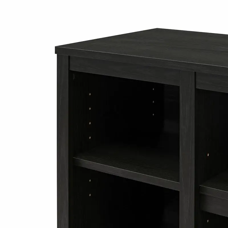 The Parsons TV Stand is just the right size for your flat paneled TV up to 50" wide. This TV Stand has tons of open storage so you can keep your cable box and gaming system in the 2 center shelves and still have room to organize your books, remotes and DVDs on the other 4 shelves. The wire management holes in the back panel keep your cords organized and tangle free. With a laminated particleboard build, the black oak woodgrain finish adds a modern touch to your space. The TV Stand ships flat to your door and requires assembly upon opening. Two adults are recommended to assemble. Once assembled, the TV Stand measures to be 20.875"H x 45.375"W x 15.75"D.