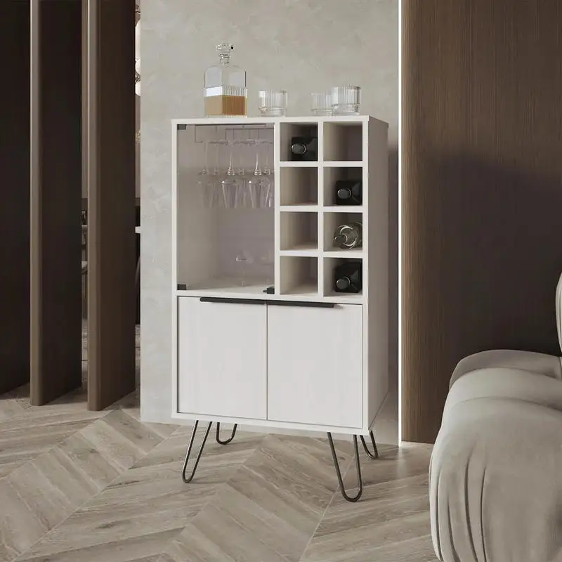 Elevate your entertainment space with this stylish bar cabinet, featuring a convenient glass holder and 8 dedicated bottle racks for organizing and displaying your wine collection. With two doors providing additional storage for bar essentials, this sophisticated piece combines functionality and elegant design, making it a must-have for any host or wine enthusiast.