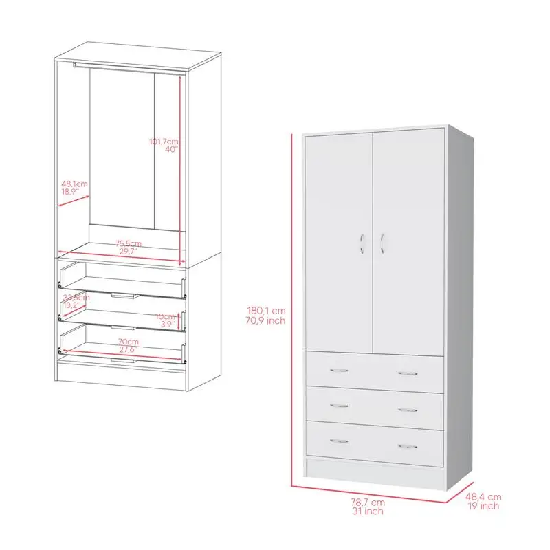 Integrated Hanging Rod: Includes a full-width rod to hang various garments, keeping them organized and wrinkle-free.