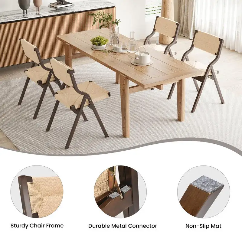Versatile Indoor Wooden Chairs: These foldable chairs are made of high-quality wood, ensuring durability and stability. The woven seat and back add a rustic charm to your porch, lawn, or garden. Whether you're hosting a gathering or enjoying a quiet afternoon, these chairs are the ideal choice